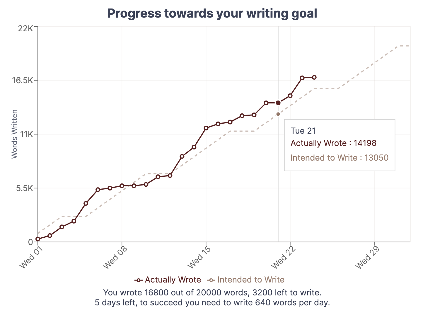 - The solid line represents how many words you actually wrote on any given day.